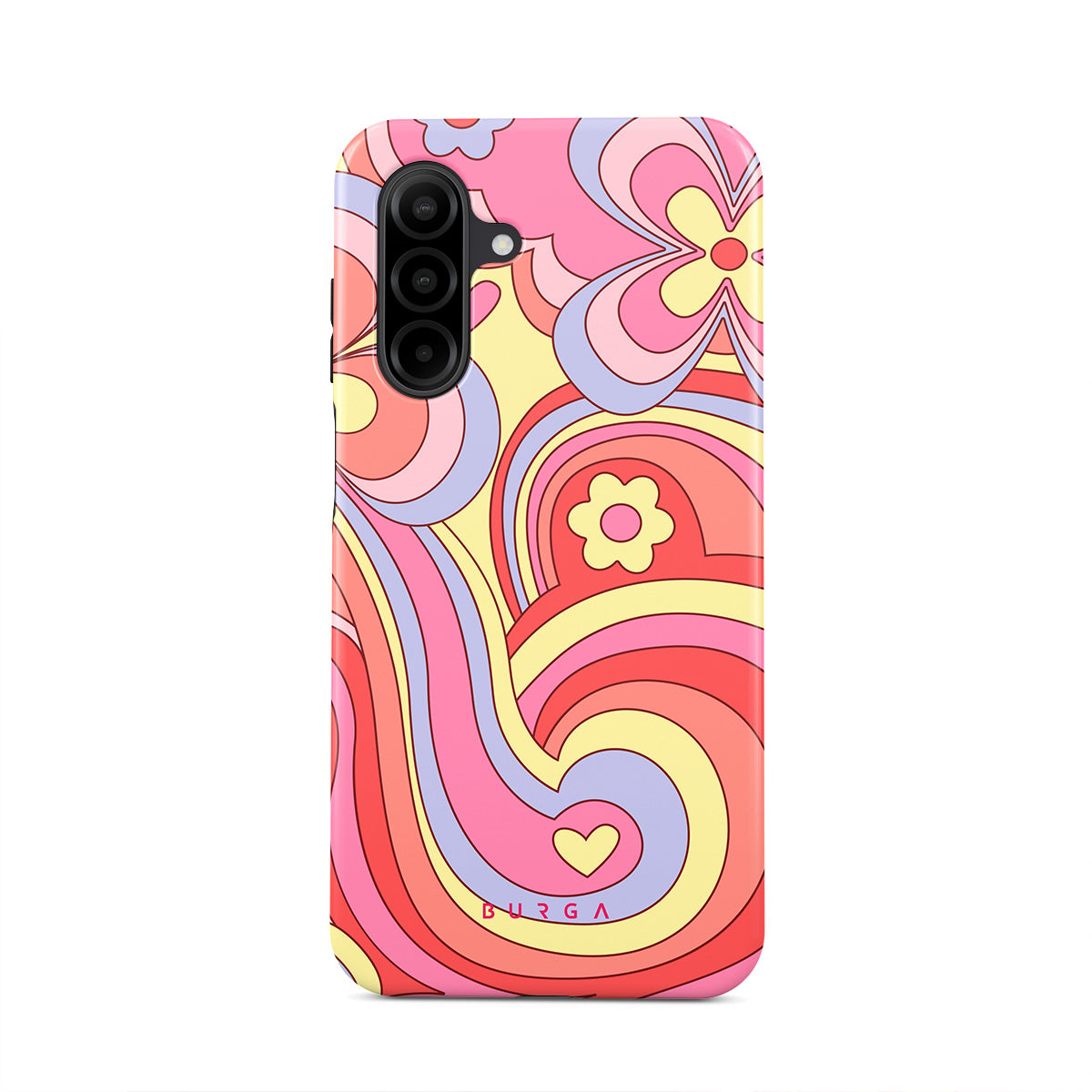 A design embodying a radiant, cheerful life filled with hope and joy. A celebration in hues, a mix of vibrant pink, yellow, and blue swirls. Roller Disco is where fashion meets fun. With beautiful pastels blending into a head-turning style, every day feels like a party. Spin your Samsung Galaxy A26 5G phone case into the spotlight!