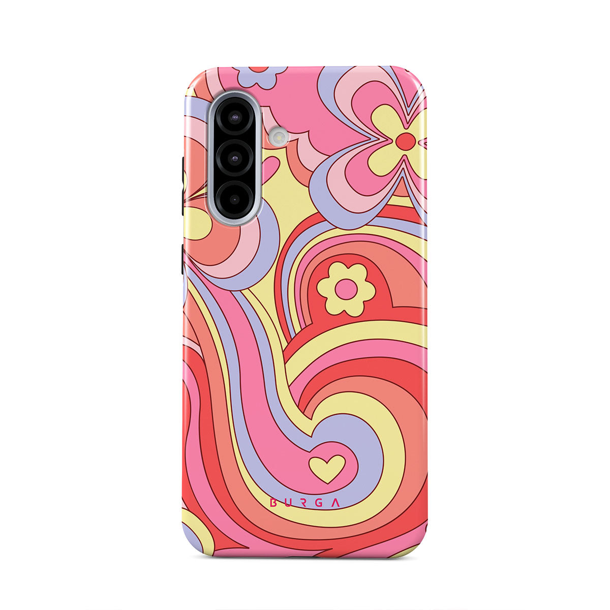 A design embodying a radiant, cheerful life filled with hope and joy. A celebration in hues, a mix of vibrant pink, yellow, and blue swirls. Roller Disco is where fashion meets fun. With beautiful pastels blending into a head-turning style, every day feels like a party. Spin your Samsung Galaxy A36 5G phone case into the spotlight!