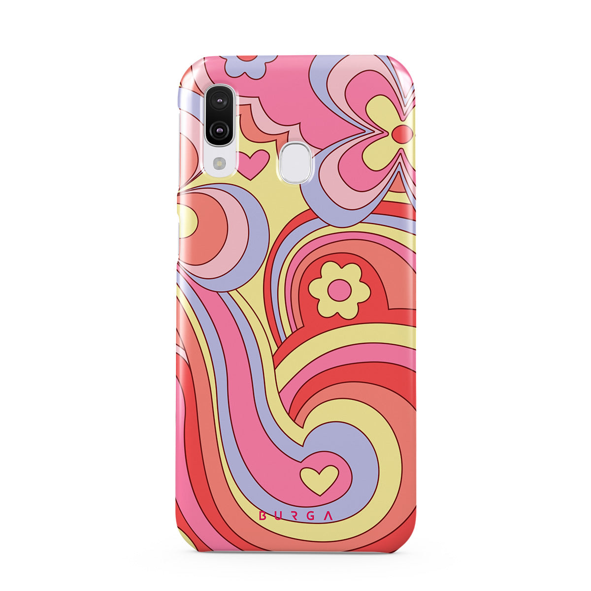 A design embodying a radiant, cheerful life filled with hope and joy. A celebration in hues, a mix of vibrant pink, yellow, and blue swirls. Roller Disco is where fashion meets fun. With beautiful pastels blending into a head-turning style, every day feels like a party. Spin your Samsung Galaxy A40 phone case into the spotlight!