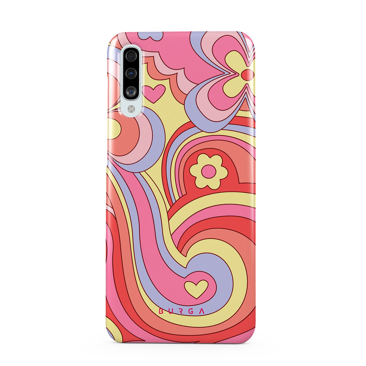 A design embodying a radiant, cheerful life filled with hope and joy. A celebration in hues, a mix of vibrant pink, yellow, and blue swirls. Roller Disco is where fashion meets fun. With beautiful pastels blending into a head-turning style, every day feels like a party. Spin your Samsung Galaxy A50 phone case into the spotlight!