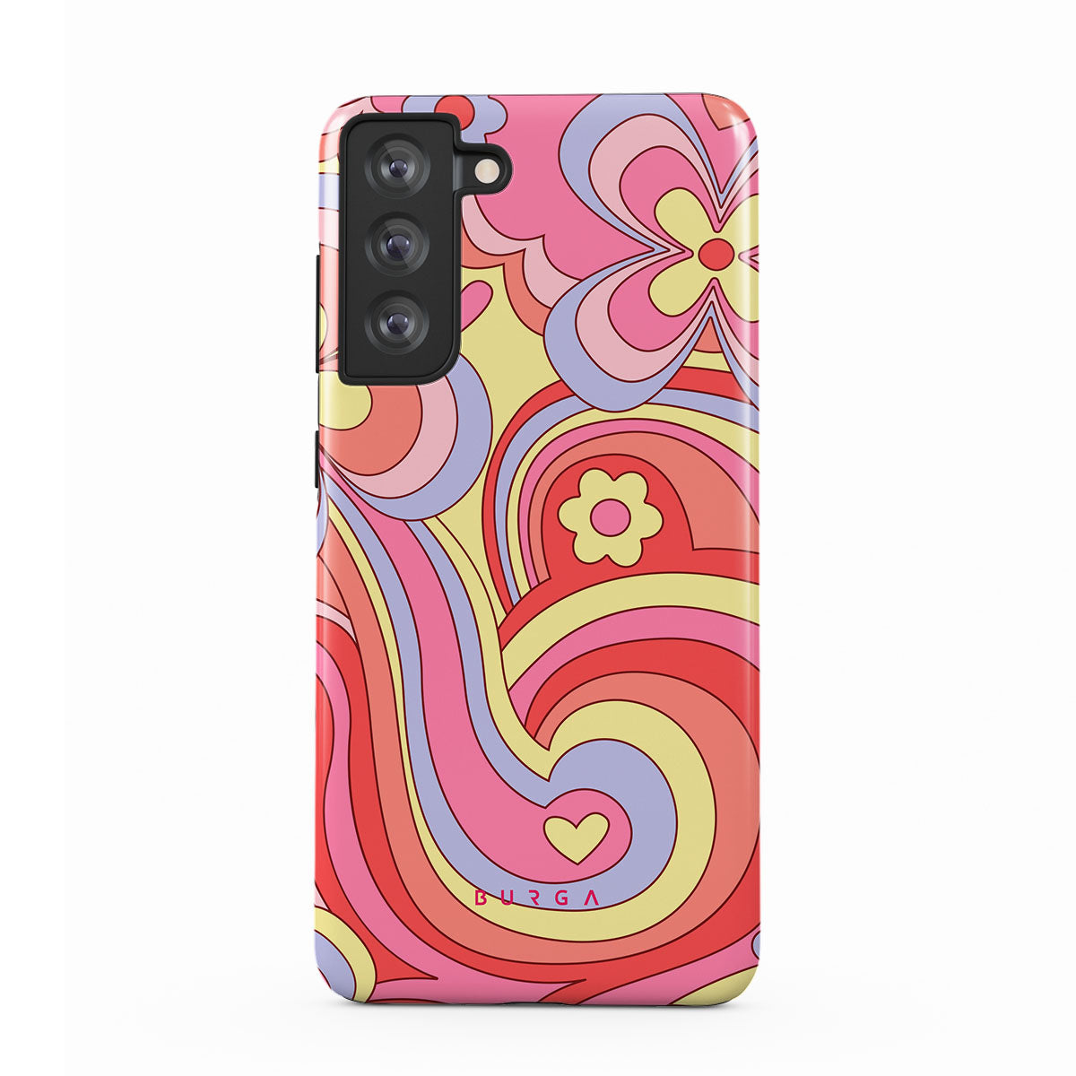 A design embodying a radiant, cheerful life filled with hope and joy. A celebration in hues, a mix of vibrant pink, yellow, and blue swirls. Roller Disco is where fashion meets fun. With beautiful pastels blending into a head-turning style, every day feels like a party. Spin your Samsung Galaxy S21 FE phone case into the spotlight!