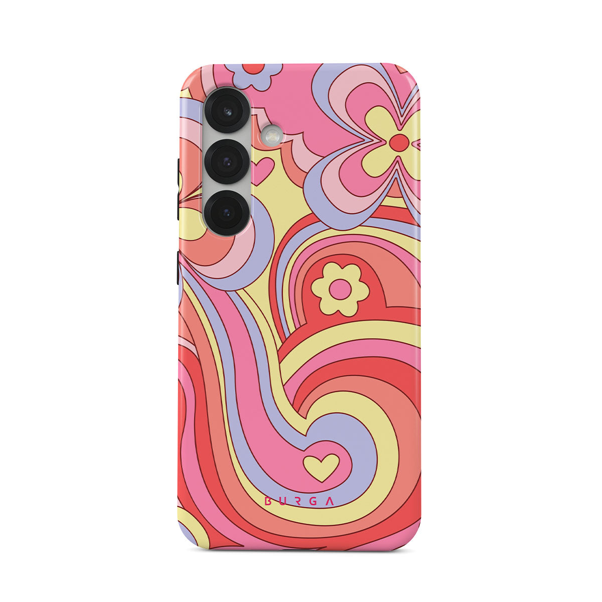 A design embodying a radiant, cheerful life filled with hope and joy. A celebration in hues, a mix of vibrant pink, yellow, and blue swirls. Roller Disco is where fashion meets fun. With beautiful pastels blending into a head-turning style, every day feels like a party. Spin your Samsung Galaxy S25 Plus phone case into the spotlight!