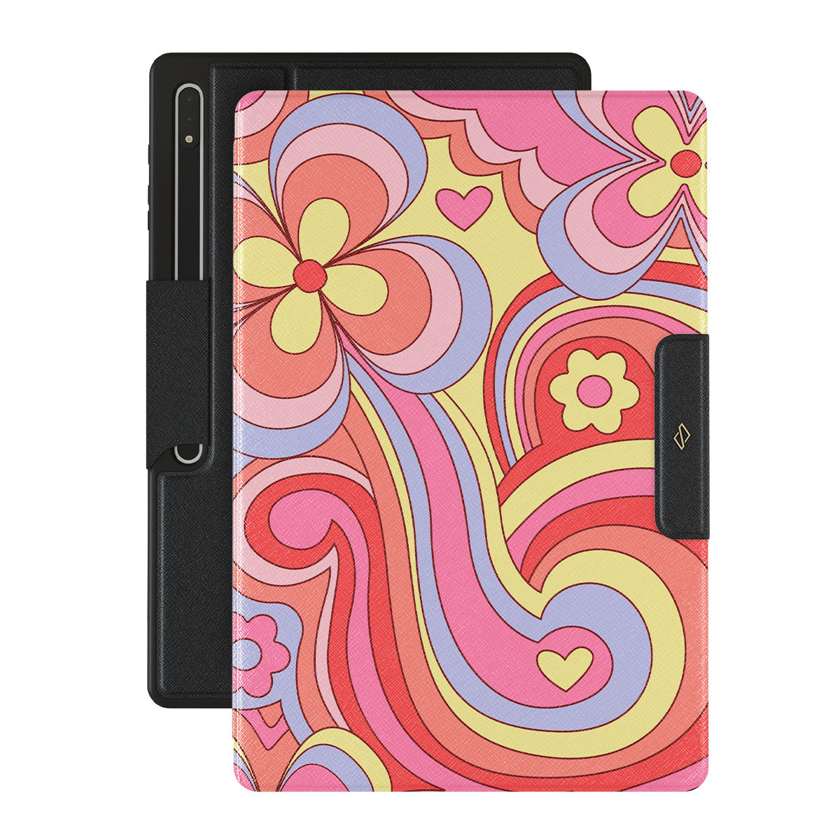 A design embodying a radiant, cheerful life filled with hope and joy. A celebration in hues, a mix of vibrant pink, yellow, and blue swirls. Roller Disco is where fashion meets fun. With beautiful pastels blending into a head-turning style, every day feels like a party. Spin your Samsung Galaxy Tab S10 Ultra folio case into the spotlight!