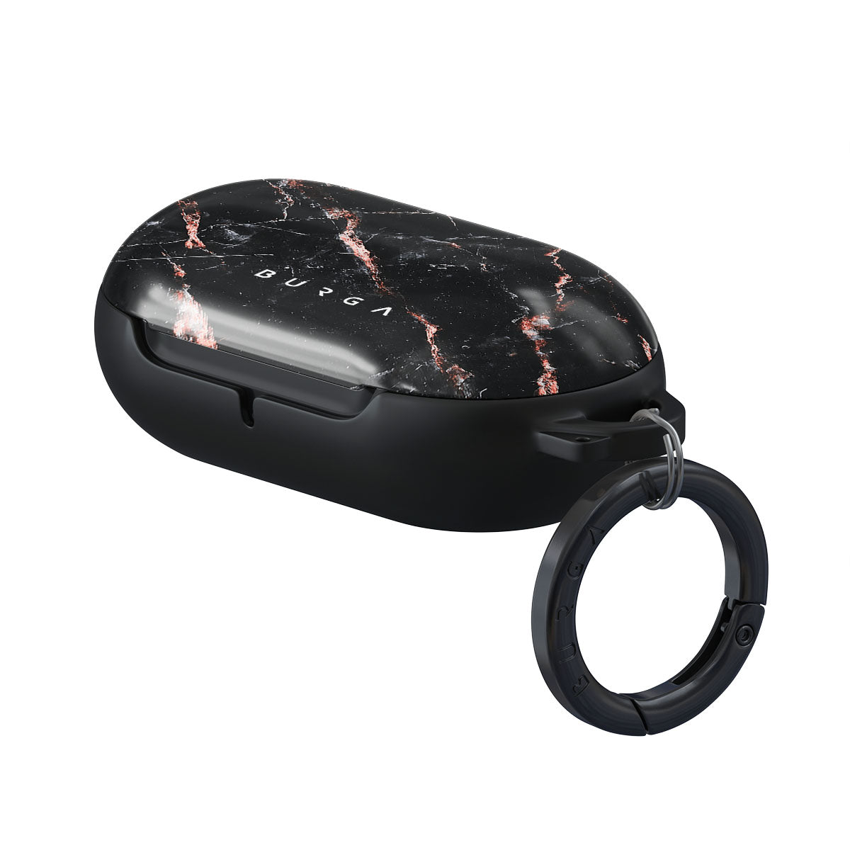 Protect y Our case from wear and tear with our Rose Gold Marble Samsung Galaxy Buds Plus case cover. The soft pink and black combination will add a touch of sophistication to your style. Now you can make your Samsung Galaxy Buds Plus case a part of your accessories. Our case fits perfectly snug around Samsung Galaxy Buds Plus . “Like a glove!” one might say. And it won’t disrupt the wireless charging capabilities of the newer model. There’s even an LED light indicator to prove it (don’t worry, wired charging still works, too). When fitted, the BURGA case will protect the delicate Samsung Galaxy Buds Plus case beneath it from scratches, bumps, and drops while remaining scratch-free itself. Our signature design pattern prints are High Quality, and will never peel or fade away- thanks to our unique printing technology. And finally, a handy carabiner is there to make your life easier and more convenient: just snap it around your keys or belt loop and tackle the day head-on. Your music is right there by your side when you need it.