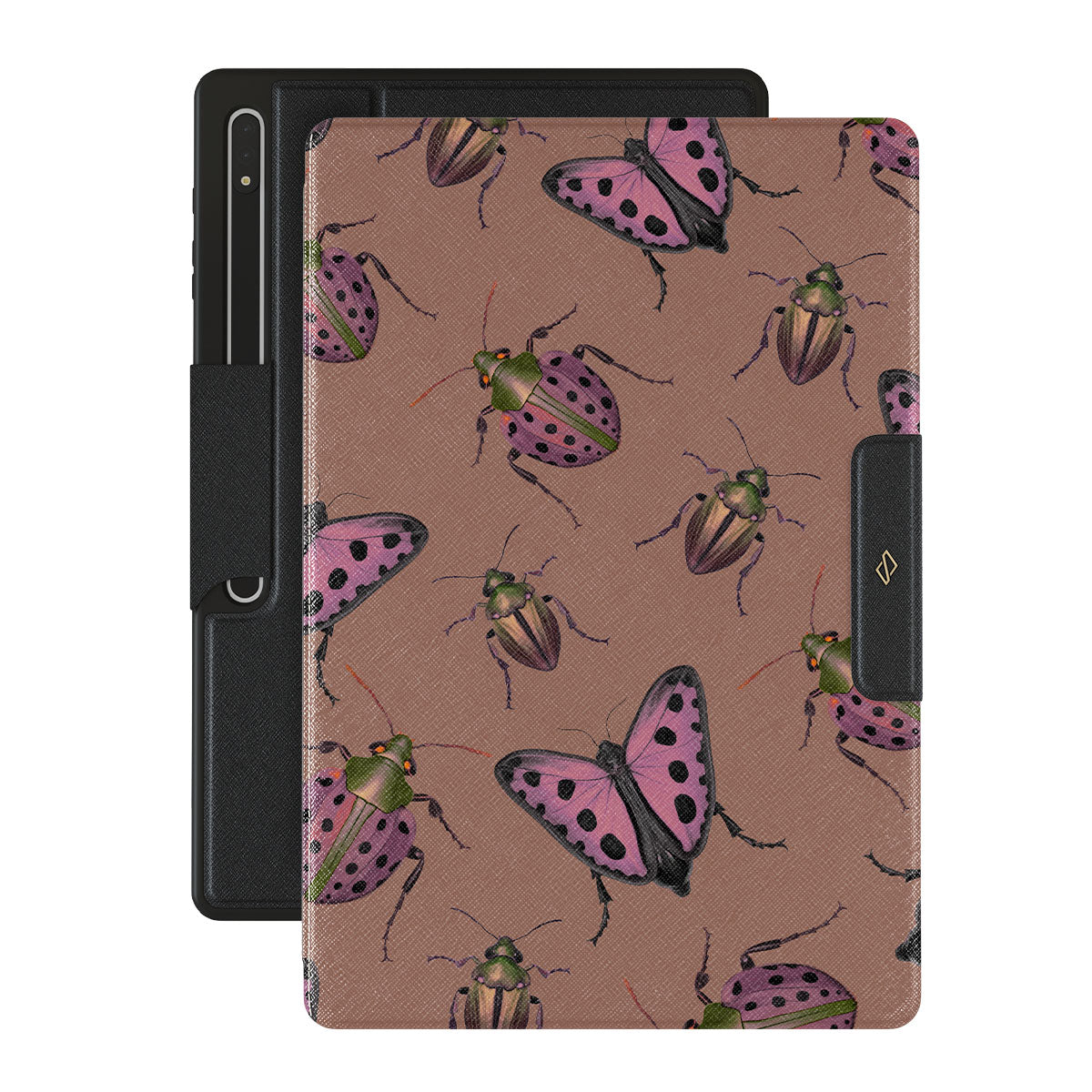 Embrace the symbiosis of nature with the Runaway Samsung Galaxy Tab S10 Ultra folio case, where the delicate beauty of butterflies meets the earthy charm of beetles. This design is a celebration of life's intricate balance, a reminder that everything in nature has its place.