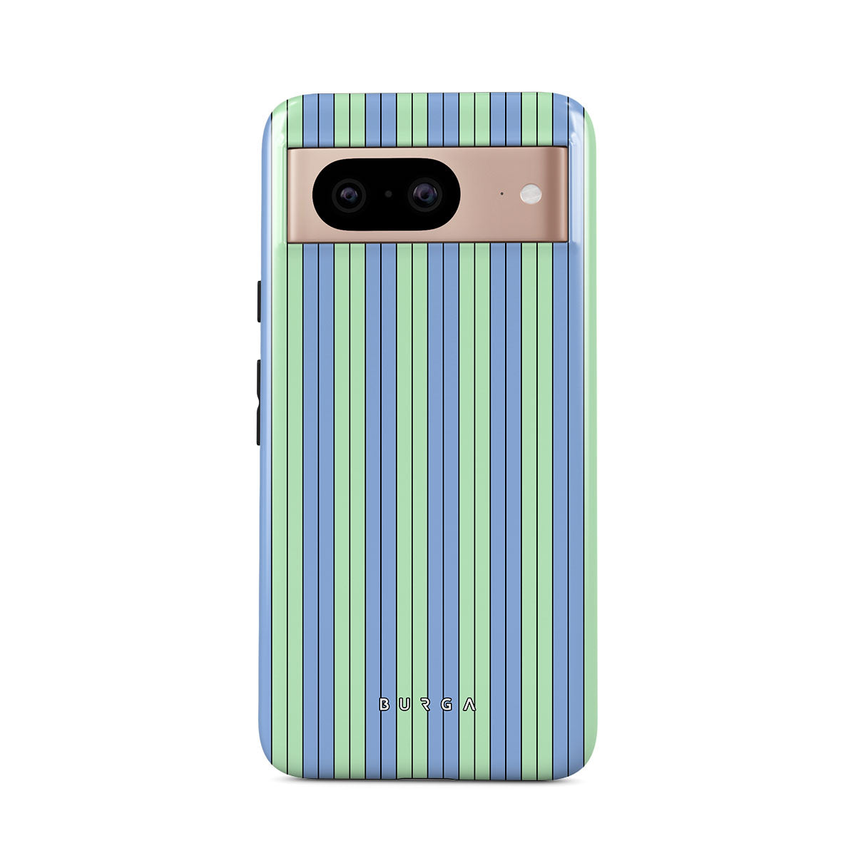 Embrace the effortless chic of Sailaway. This Google Pixel 8 phone case design lines up a parade of soft, pastel stripes, capturing the laid-back essence of seaside escapades. It's your daily slice of summer fun, wrapped in style.