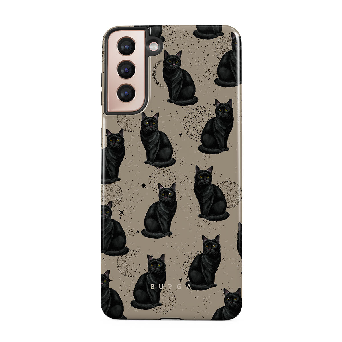 They say black cats are bad luck, but with our Salem Samsung Galaxy S21 Plus phone case design, fortune follows wherever these little guardians go. These cats aren't just symbols; they’re your protectors in the mysterious world of style. Superstitious or not, this one’s got your back.