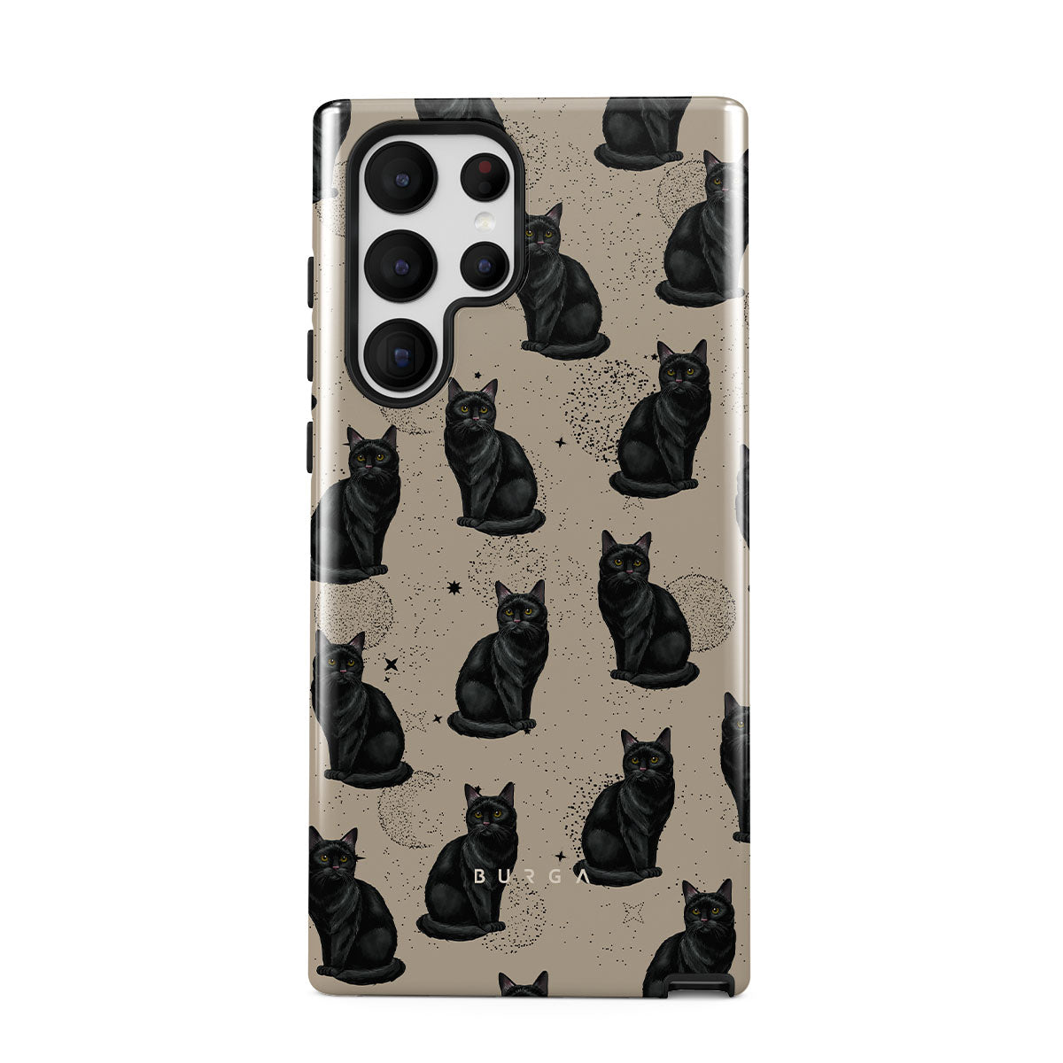 They say black cats are bad luck, but with our Salem Samsung Galaxy S22 Ultra phone case design, fortune follows wherever these little guardians go. These cats aren't just symbols; they’re your protectors in the mysterious world of style. Superstitious or not, this one’s got your back.