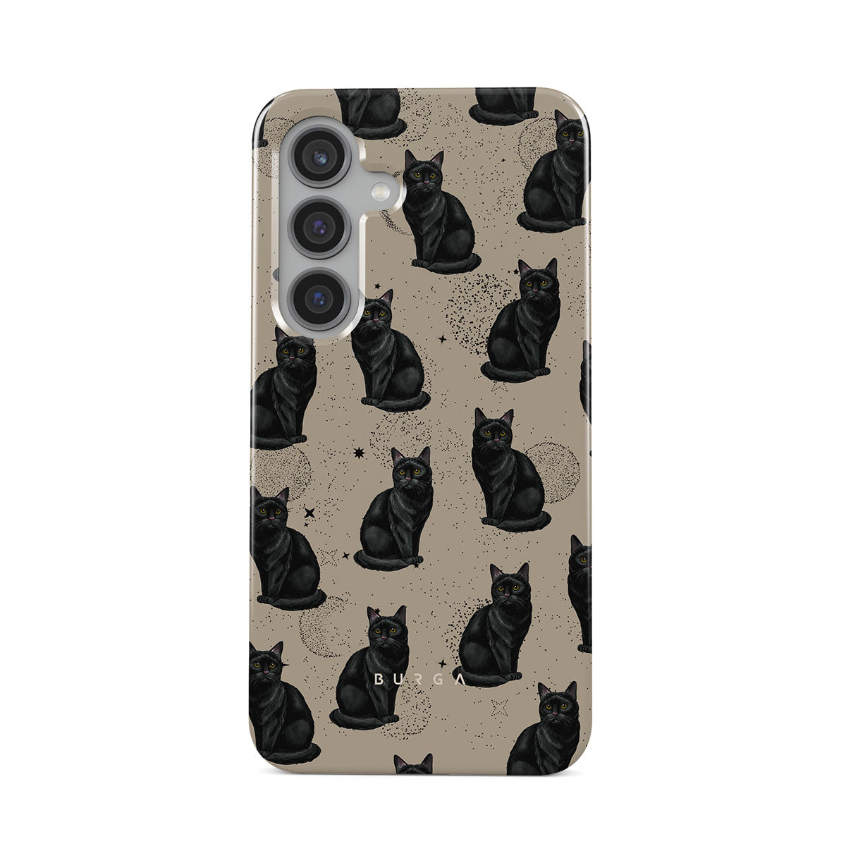 They say black cats are bad luck, but with our Salem Samsung Galaxy S24 phone case design, fortune follows wherever these little guardians go. These cats aren't just symbols; they’re your protectors in the mysterious world of style. Superstitious or not, this one’s got your back.