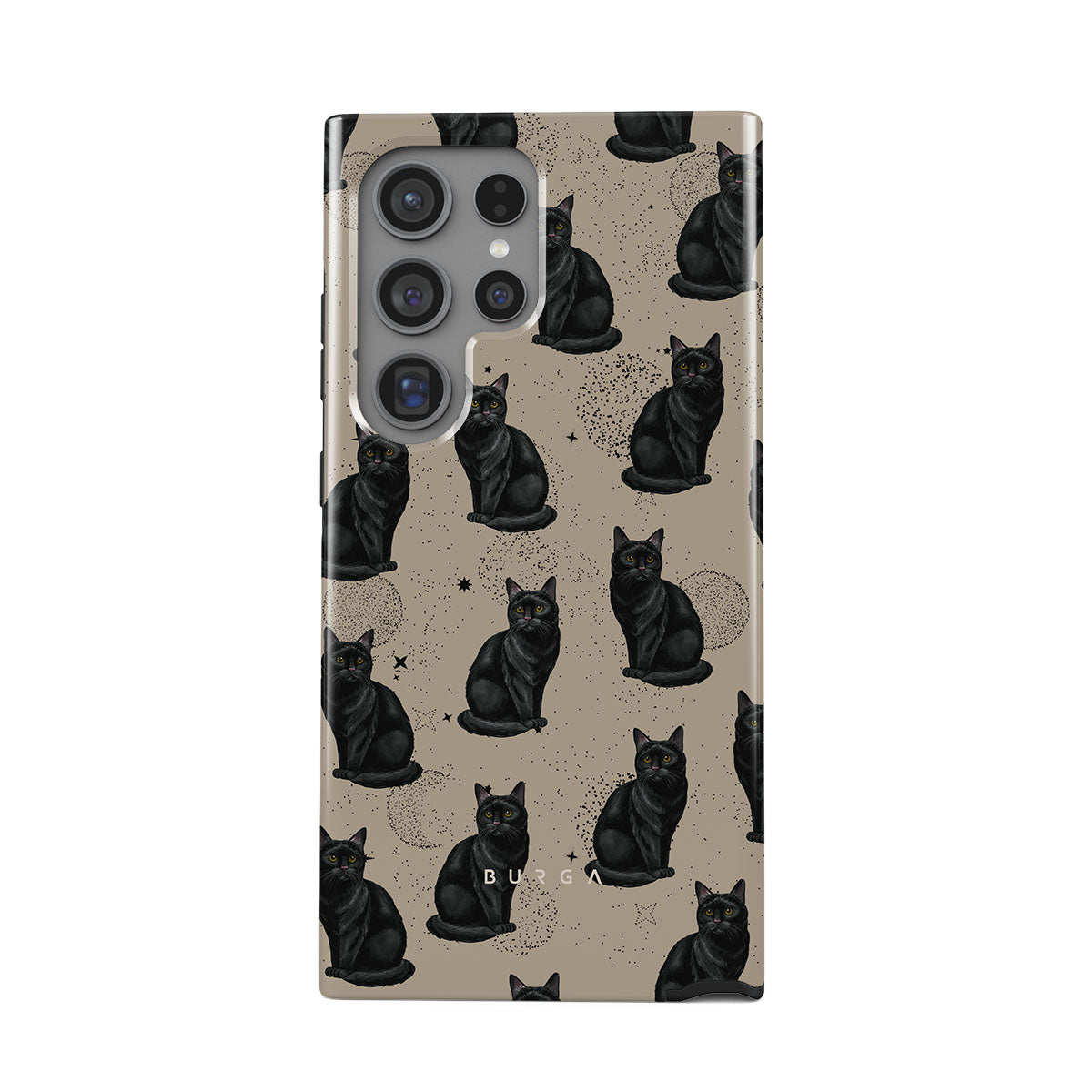 They say black cats are bad luck, but with our Salem Samsung Galaxy S24 Ultra phone case design, fortune follows wherever these little guardians go. These cats aren't just symbols; they’re your protectors in the mysterious world of style. Superstitious or not, this one’s got your back.