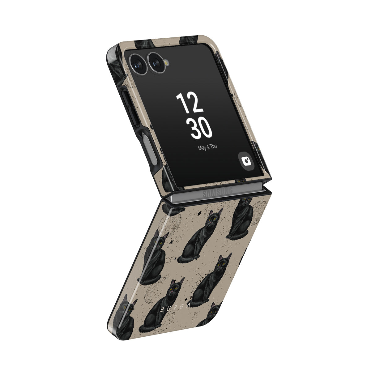 They say black cats are bad luck, but with our Salem Samsung Galaxy Z Flip 7 phone case design, fortune follows wherever these little guardians go. These cats aren't just symbols; they’re your protectors in the mysterious world of style. Superstitious or not, this one’s got your back.