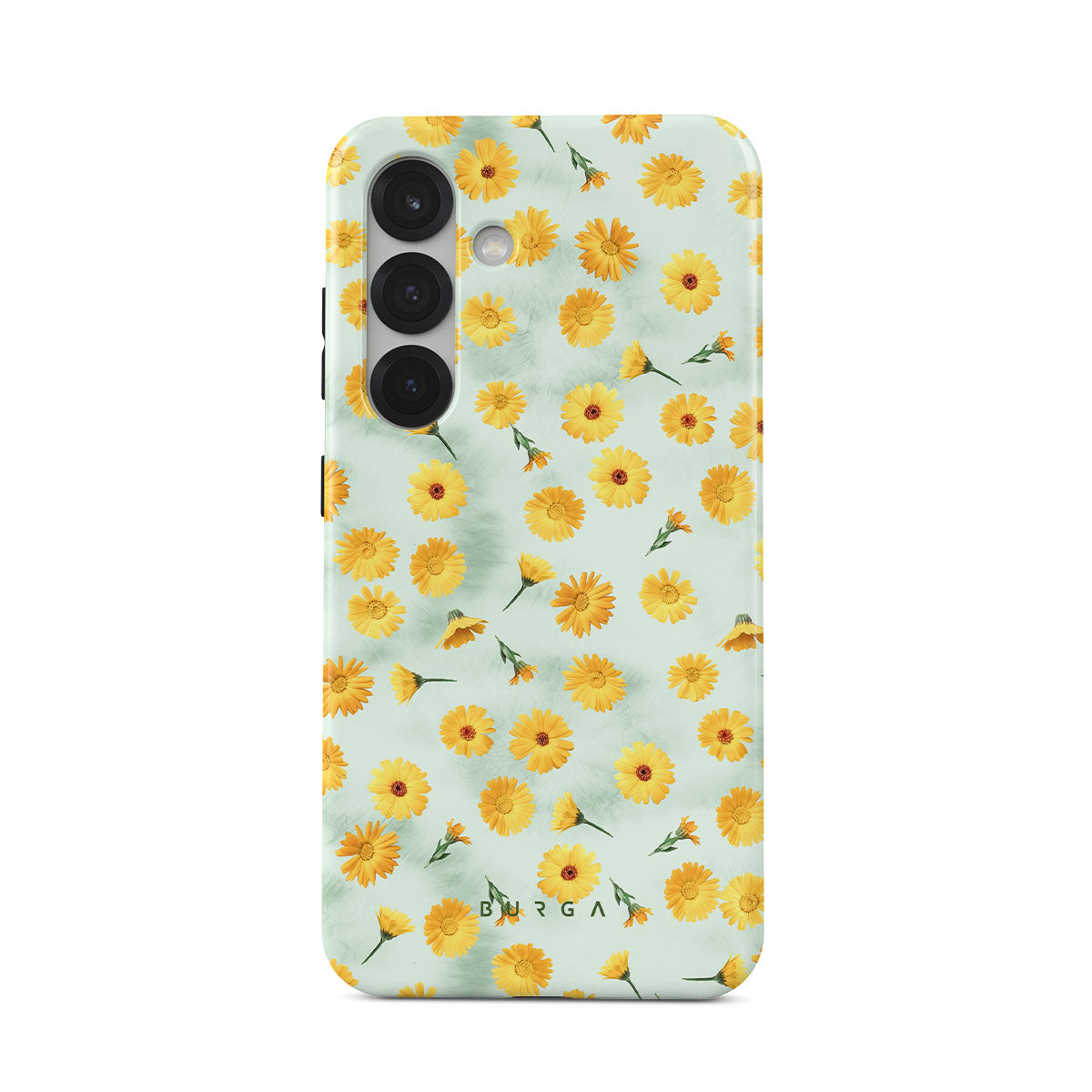 In our Sanctuary of Love Samsung Galaxy S25 phone case, a soft mint marble meets a glowing pattern of yellow flowers that will surely add a splash of energy to your style while protecting your phone from dangerous falls.