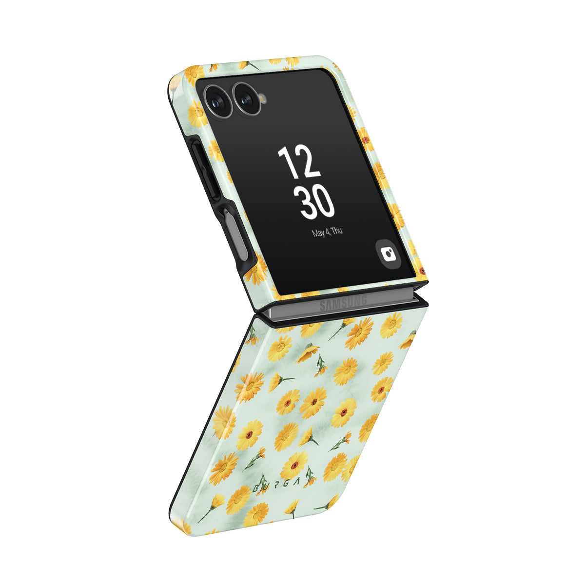 In our Sanctuary of Love Samsung Galaxy Z Flip 7 phone case, a soft mint marble meets a glowing pattern of yellow flowers that will surely add a splash of energy to your style while protecting your phone from dangerous falls.