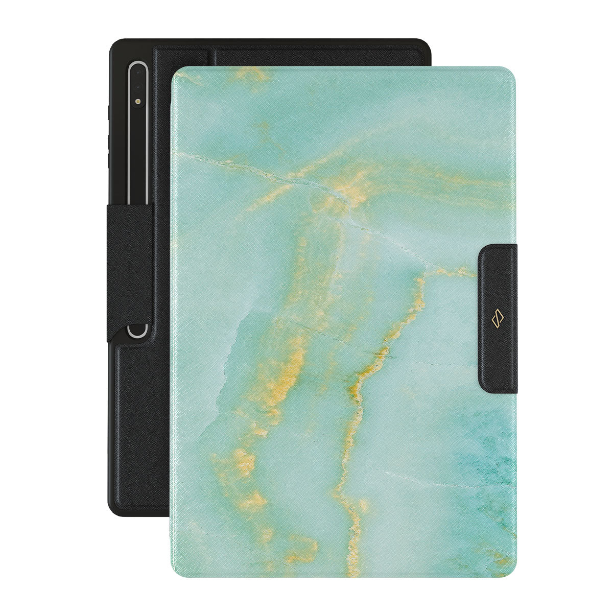 Take the vacation memories with yourself. Now you can find the sandy shore and beautiful water in our pastel Sea Salt Samsung Galaxy Tab S10 Ultra folio case design. The delicate marble pattern that combines with pretty pastel colors adds a soft touch to your device while protecting it from falls.