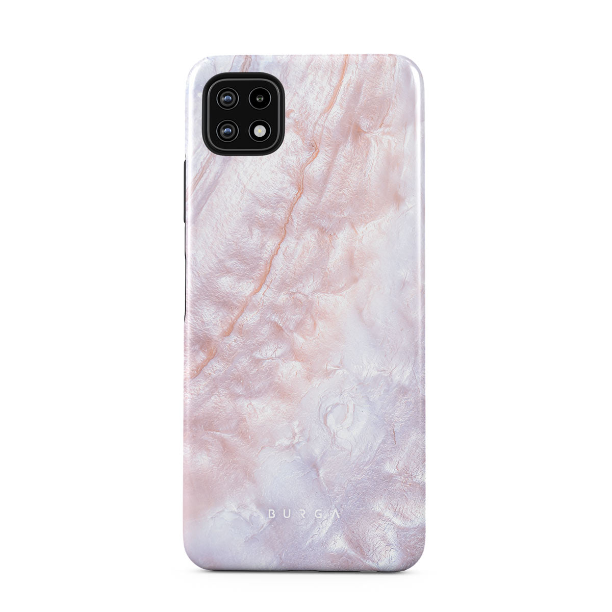 Have you wondered what the crown of a Mermaid would look like? Would it shine through the waters to lure in the sailors, or would it be as subtle as the pretty pattern found on a pastel seashell? Have this subtle sea shell inspired Samsung Galaxy A22 5G phone case in your collection and protect your phone in style.