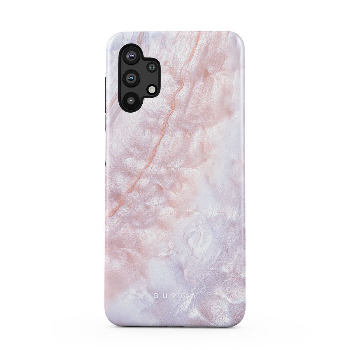 Have you wondered what the crown of a Mermaid would look like? Would it shine through the waters to lure in the sailors, or would it be as subtle as the pretty pattern found on a pastel seashell? Have this subtle sea shell inspired Samsung Galaxy A32 5G phone case in your collection and protect your phone in style.