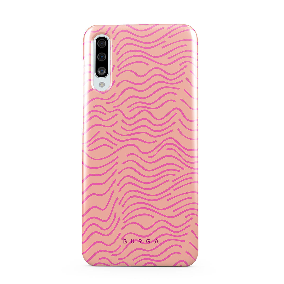 Everyone has their hideaway place for moments of relaxation. We have combined the feel it gives us in our Secret Spot Samsung Galaxy A50 phone case design. The soft pink wavy pattern casually flows through the pastel pink background, creating very well-thought-out chaos. Bring peace of mind with this cute pink case, which will keep your phone safe in its little hideaway!