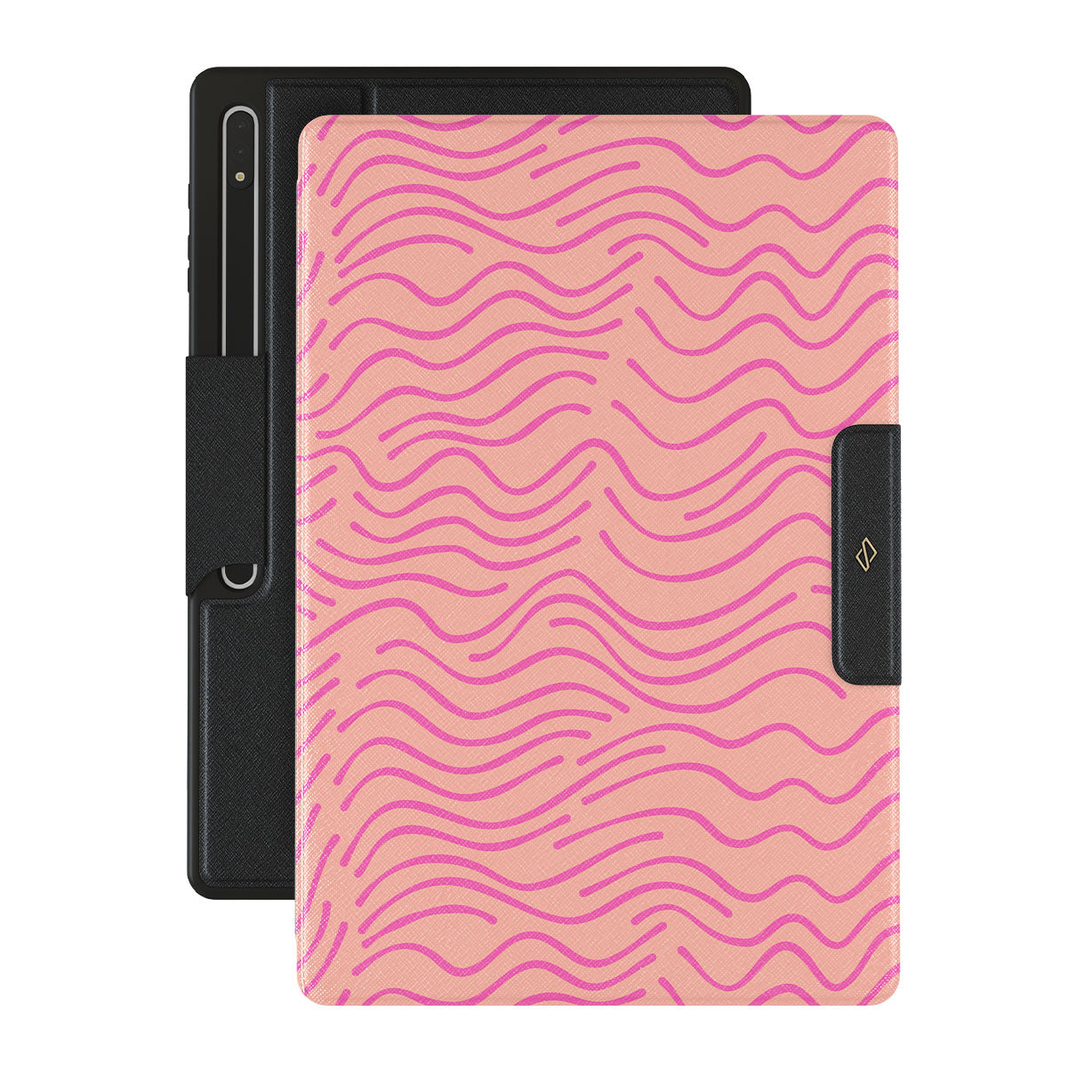 Everyone has their hideaway place for moments of relaxation. We have combined the feel it gives us in our Secret Spot Samsung Galaxy Tab S8 Ultra folio case design. The soft pink wavy pattern casually flows through the pastel pink background, creating very well-thought-out chaos. Bring peace of mind with this cute pink case, which will keep your Galaxy Tab safe in its little hideaway!