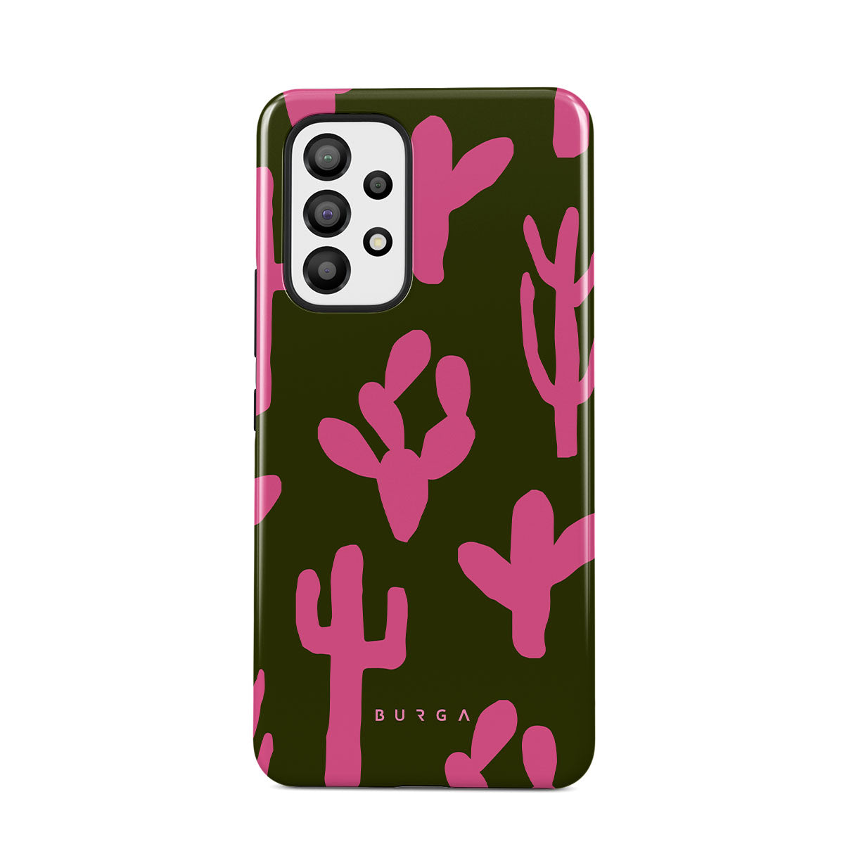 Step into a desert oasis at dusk, where vibrant pink cactuses bloom against a mysterious dark background. Serenade is a poetic fusion of resilience and beauty, turning your Samsung Galaxy A53 phone case into a sanctuary of tranquility amidst the chaos of everyday life.