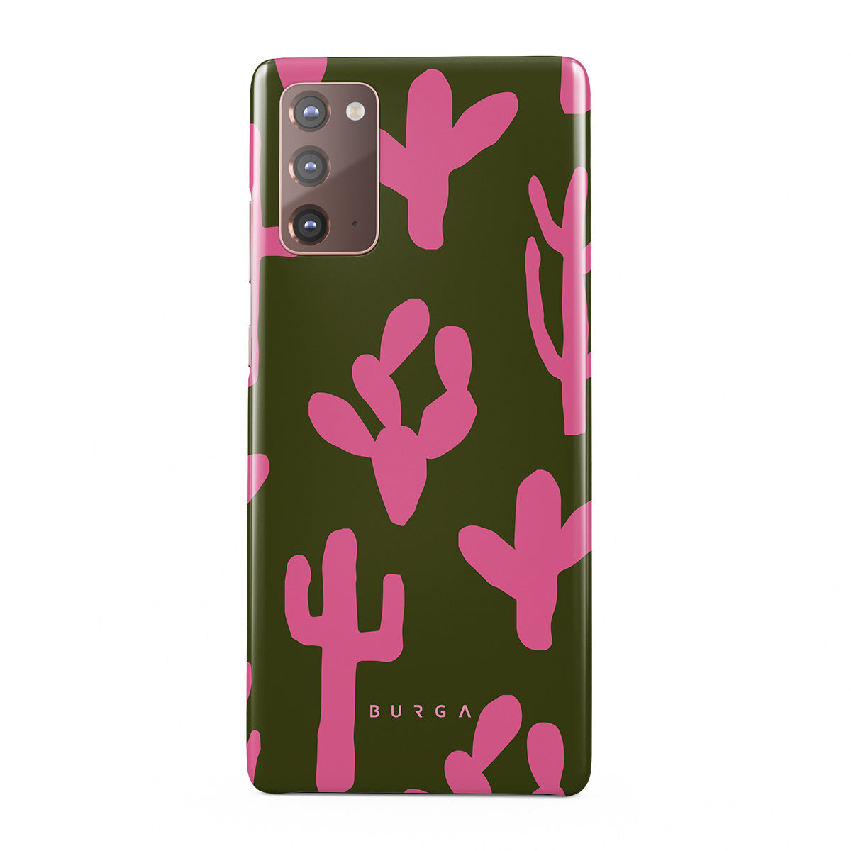 Step into a desert oasis at dusk, where vibrant pink cactuses bloom against a mysterious dark background. Serenade is a poetic fusion of resilience and beauty, turning your Samsung Galaxy Note 20 4G / 5G phone case into a sanctuary of tranquility amidst the chaos of everyday life.