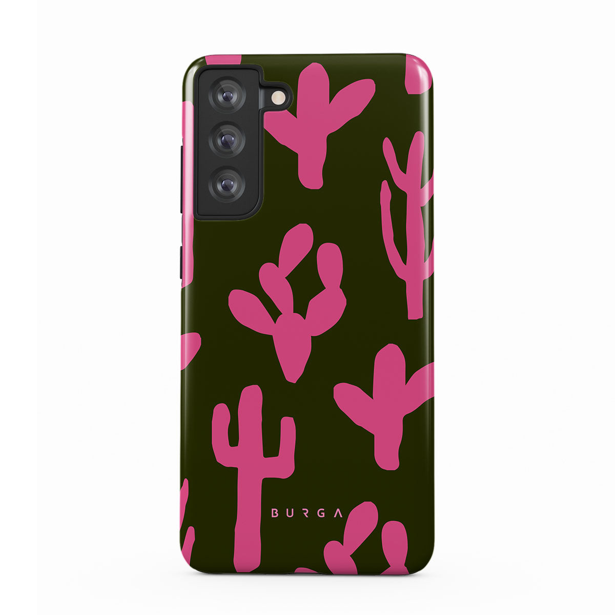 Step into a desert oasis at dusk, where vibrant pink cactuses bloom against a mysterious dark background. Serenade is a poetic fusion of resilience and beauty, turning your Samsung Galaxy S21 FE phone case into a sanctuary of tranquility amidst the chaos of everyday life.