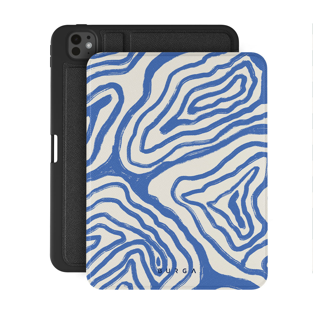The Seven Seas iPad Pro 11 (8th/7th Gen) folio case is a perfect accessory for those who love the ocean and seek to carry a piece of its magic with them. The delicate swirls that dance in shades of oceanic blue inspire a sense of adventure. At the same time, they invite us to pause and appreciate the fluidity and serenity of the sea.