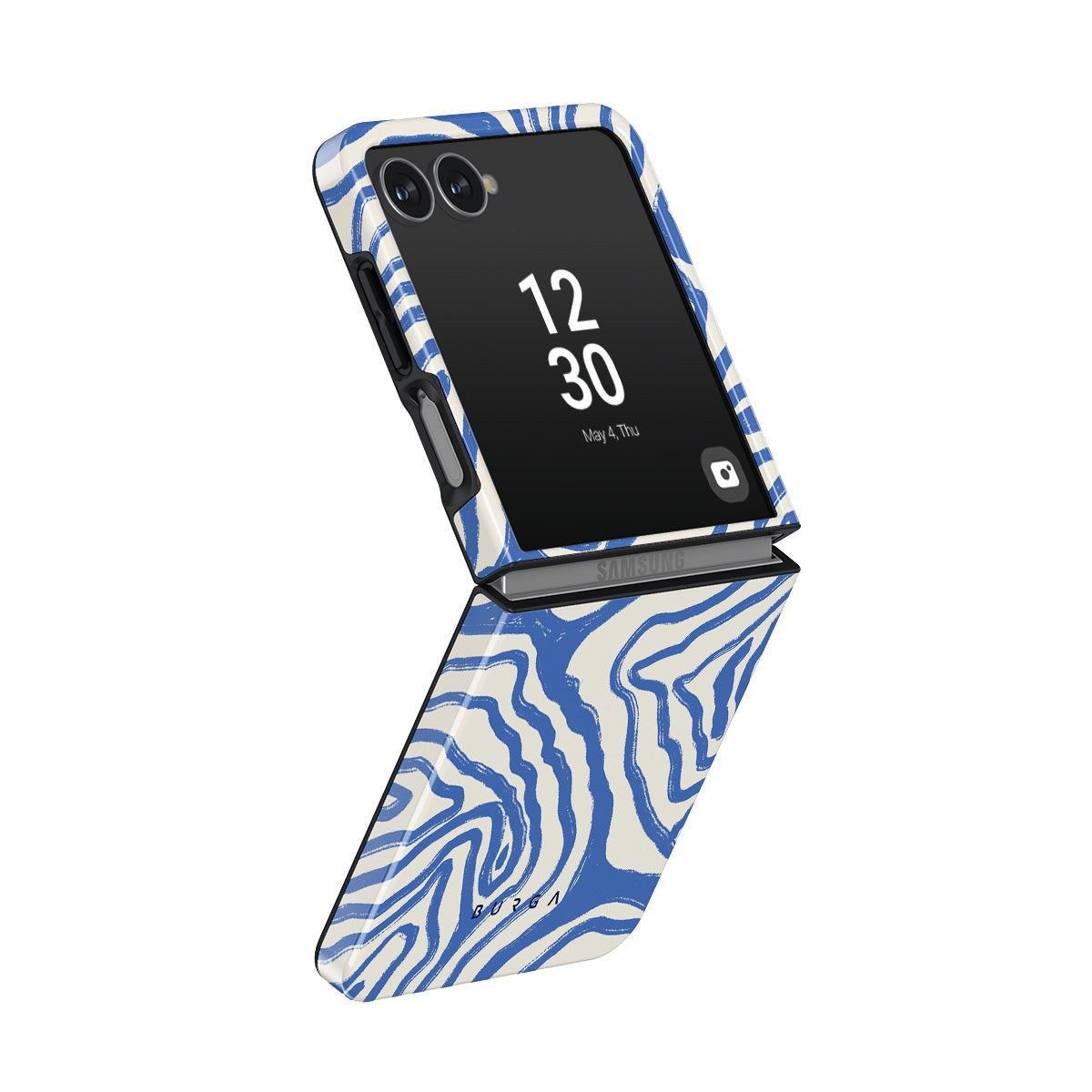 The Seven Seas Samsung Galaxy Z Flip 7 case is a perfect accessory for those who love the ocean and seek to carry a piece of its magic with them. The delicate swirls that dance in shades of oceanic blue inspire a sense of adventure. At the same time, they invite us to pause and appreciate the fluidity and serenity of the sea.