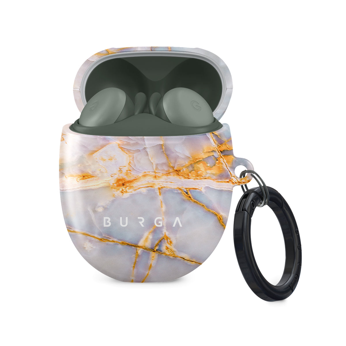 Water marbling effect, pastel colors, and marble trend meet in our Shallow Sea Google Pixel Buds A case cover. Add this unique trifecta to your accessory collection and catch everyone's eye while simply keeping your Google Pixel Buds A safe. Our case fits perfectly snug around Google Pixel Buds A . “Like a glove!” one might say. And it won’t disrupt the wireless charging capabilities of the newer model. There’s even an LED light indicator to prove it (don’t worry, wired charging still works, too). When fitted, the BURGA case will protect the delicate Google Pixel Buds A case beneath it from scratches, bumps, and drops while remaining scratch-free itself. Our signature design pattern prints are High Quality, and will never peel or fade away- thanks to our unique printing technology. And finally, a handy carabiner is there to make your life easier and more convenient: just snap it around your keys or belt loop and tackle the day head-on. Your music is right there by your side when you need it.