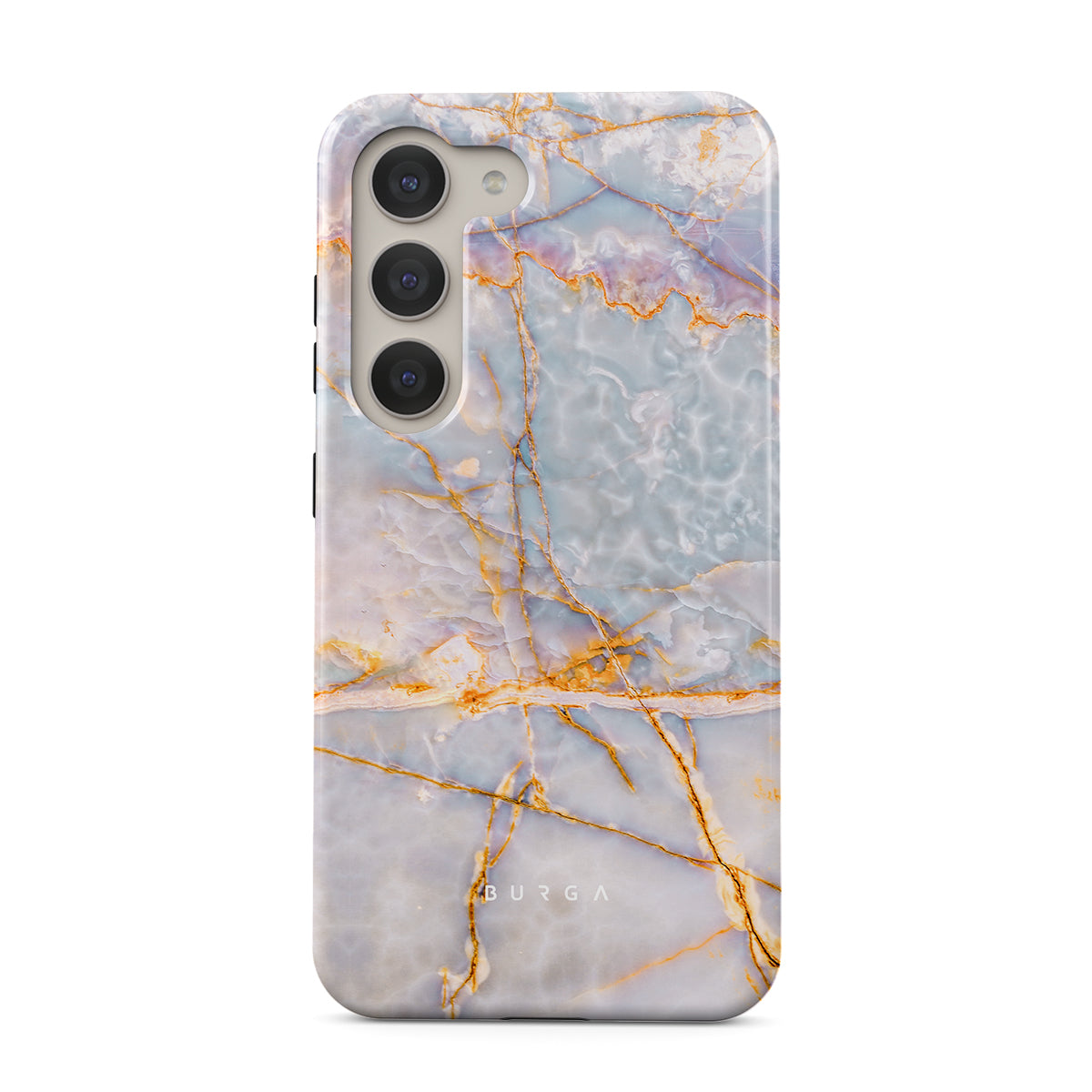 Shells, little fishes, pebbles, and how the water marbles when the sun shines through it inspired our Shallow Sea Samsung Galaxy S23 Plus phone case. Marble meets geode look in our durable case that will protect your device from any unexpected falls.