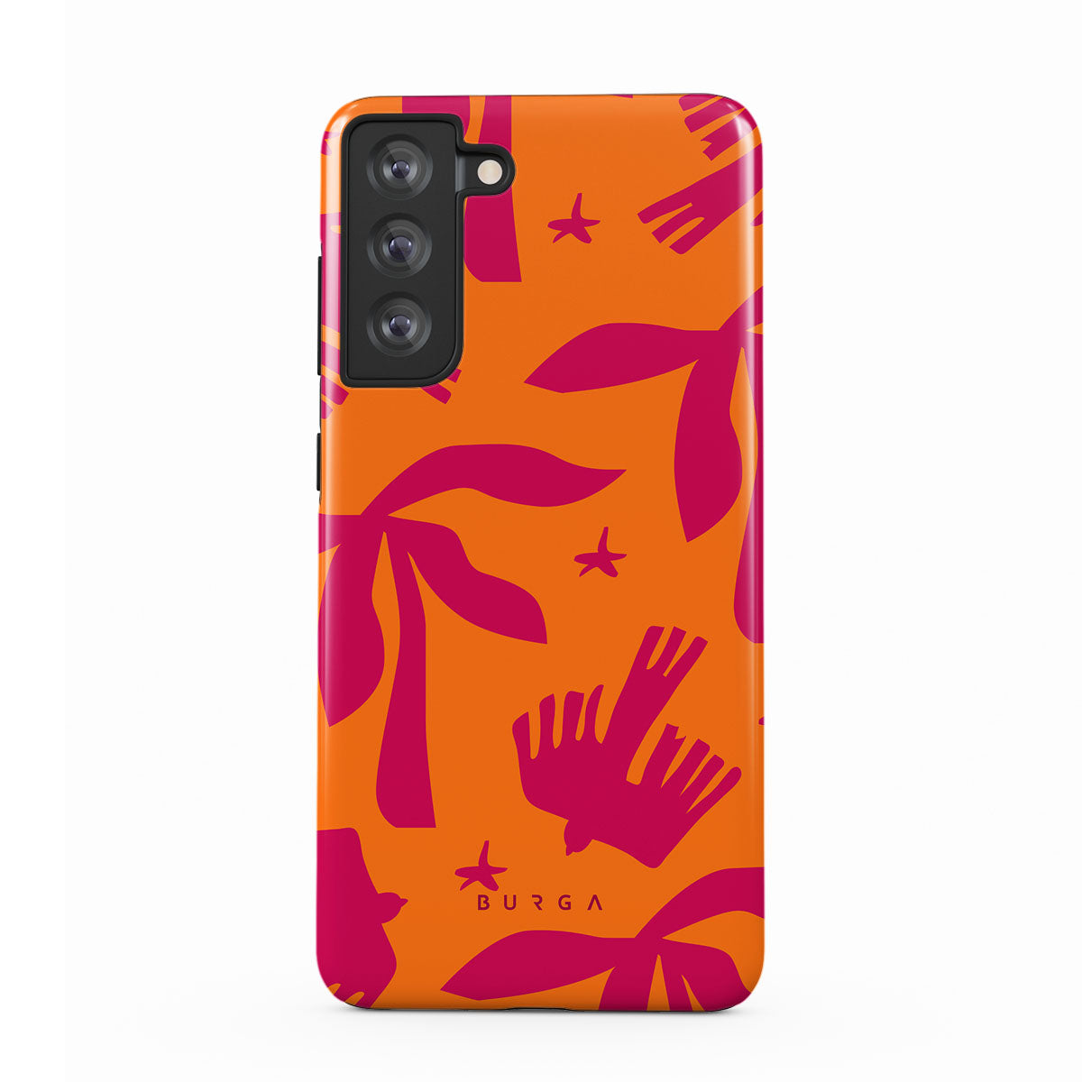 Meet Siesta, the Samsung Galaxy S21 FE phone case that turns every day into a tropical getaway, your own slice of paradise. The unapologetically vivid oranges and bright pinks capture the spirit of warm, sunny afternoons and the laid-back vibes of a leisurely siesta.