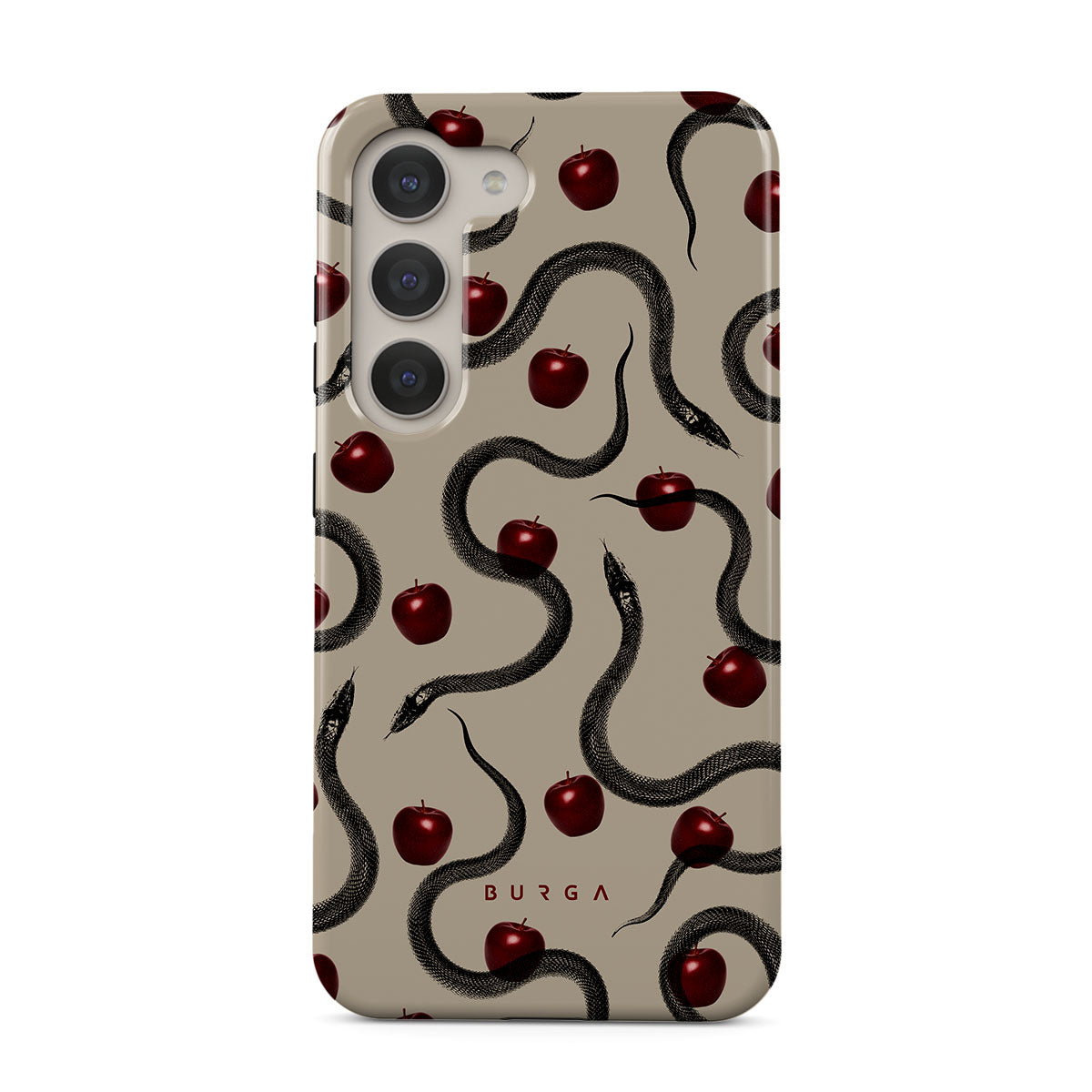Lush and provocative, this Samsung Galaxy S23 phone case design pulls you into a story as old as time. The apples glow with promise, the serpents coil with strength. Sinful is a reminder that the sweetest temptations often hide the sharpest edges.