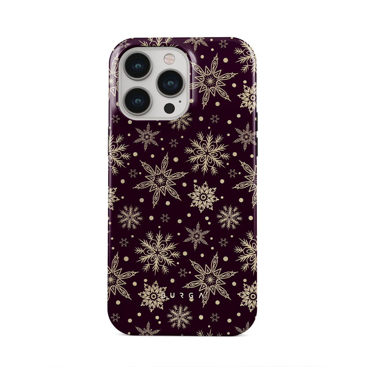 Magical, mythical, and mesmerizing, our Sleeping Beauty iPhone 14 Pro phone case is precisely that. The deep burgundy background emphasizes the elegance of the intricate patterns of golden snowflakes. Add a touch of expensive elegance to your device while keeping it safe from all the dangerous falls.
