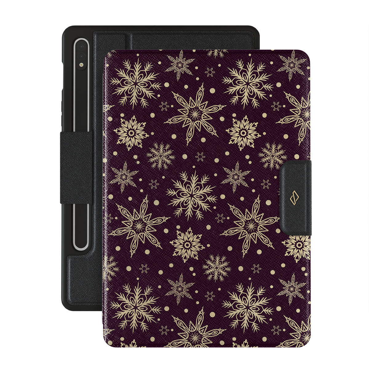 Magical, mythical, and mesmerizing, our Sleeping Beauty Samsung Galaxy Tab S10+ folio case is precisely that. The deep burgundy background emphasizes the elegance of the intricate patterns of golden snowflakes. Add a touch of expensive elegance to your device while keeping it safe from all the dangerous falls.