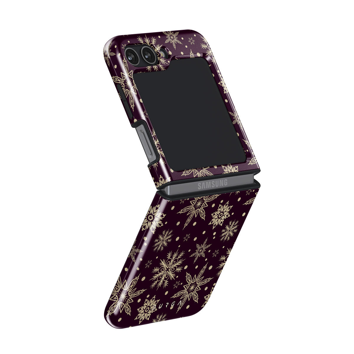 Magical, mythical, and mesmerizing, our Sleeping Beauty Samsung Galaxy Z Flip 5 phone case is precisely that. The deep burgundy background emphasizes the elegance of the intricate patterns of golden snowflakes. Add a touch of expensive elegance to your device while keeping it safe from all the dangerous falls.