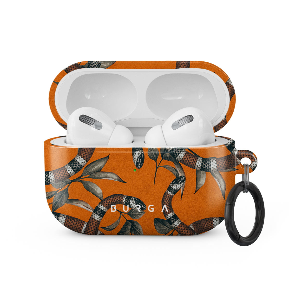 Bright orange and dangerously captivating Apple Airpods Pro case cover will surely catch your eye with the fierce snake pattern. The colorful design will take your accessory game to the next level while protecting the case from scratches and dust. Our case fits perfectly snug around Apple Airpods Pro . “Like a glove!” one might say. And it won’t disrupt the wireless charging capabilities of the newer model. There’s even an LED light indicator to prove it (don’t worry, wired charging still works, too). When fitted, the BURGA case will protect the delicate Apple Airpods Pro case beneath it from scratches, bumps, and drops while remaining scratch-free itself. Our signature design pattern prints are High Quality, and will never peel or fade away- thanks to our unique printing technology. And finally, a handy carabiner is there to make your life easier and more convenient: just snap it around your keys or belt loop and tackle the day head-on. Your music is right there by your side when you need it.