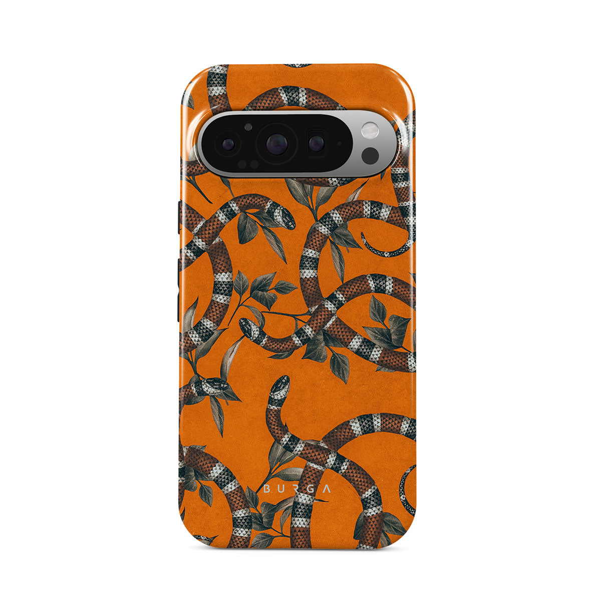 Take a bit of fierceness with yourself with our bright orange and dangerously beautiful Google Pixel 9 Pro XL phone case with a snake pattern. This case is real eye candy for fashion lovers and just as needed for those who strive to keep their phones protected.