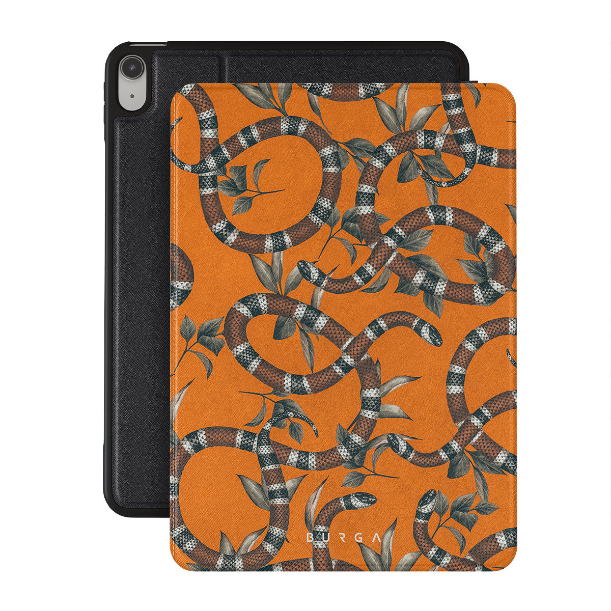 Take a bit of fierceness with yourself with our bright orange and dangerously beautiful iPad 10.9 (A16/10th Gen) folio case with a snake pattern. This case is real eye candy for fashion lovers and just as needed for those who strive to keep their iPads protected.