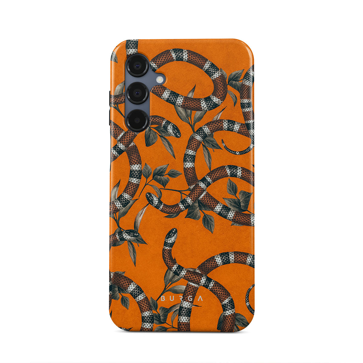 Take a bit of fierceness with yourself with our bright orange and dangerously beautiful Samsung Galaxy A16 phone case with a snake pattern. This case is real eye candy for fashion lovers and just as needed for those who strive to keep their phones protected.