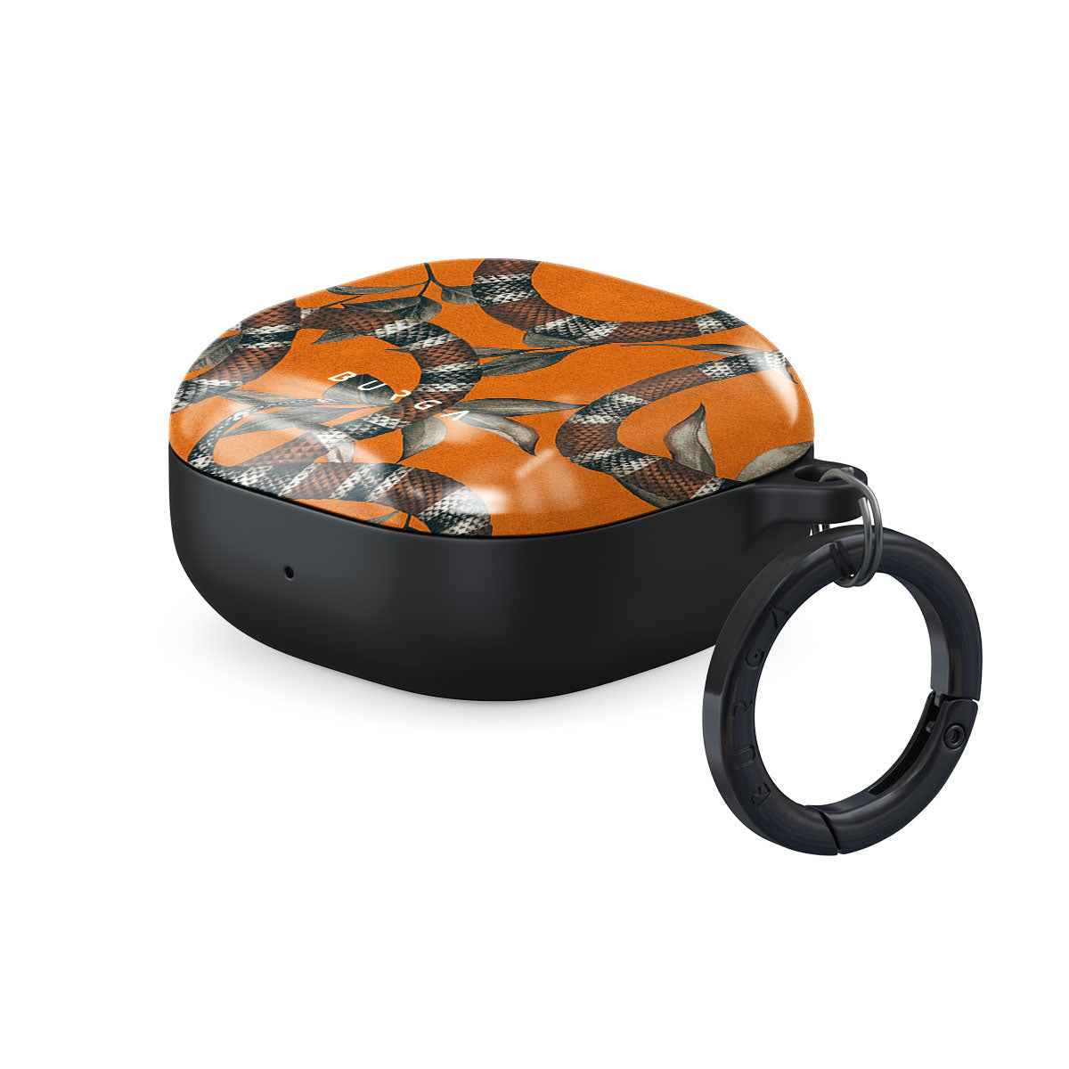 Bright orange and dangerously captivating Samsung Galaxy Buds 2 case cover will surely catch your eye with the fierce snake pattern. The colorful design will take your accessory game to the next level while protecting the case from scratches and dust. Our case fits perfectly snug around Samsung Galaxy Buds 2 . “Like a glove!” one might say. And it won’t disrupt the wireless charging capabilities of the newer model. There’s even an LED light indicator to prove it (don’t worry, wired charging still works, too). When fitted, the BURGA case will protect the delicate Samsung Galaxy Buds 2 case beneath it from scratches, bumps, and drops while remaining scratch-free itself. Our signature design pattern prints are High Quality, and will never peel or fade away- thanks to our unique printing technology. And finally, a handy carabiner is there to make your life easier and more convenient: just snap it around your keys or belt loop and tackle the day head-on. Your music is right there by your side when you need it.