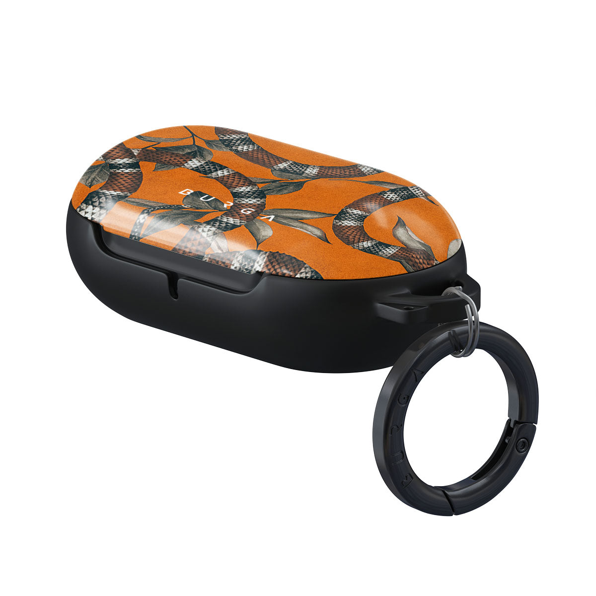 Bright orange and dangerously captivating Samsung Galaxy Buds Plus case cover will surely catch your eye with the fierce snake pattern. The colorful design will take your accessory game to the next level while protecting the case from scratches and dust. Our case fits perfectly snug around Samsung Galaxy Buds Plus . “Like a glove!” one might say. And it won’t disrupt the wireless charging capabilities of the newer model. There’s even an LED light indicator to prove it (don’t worry, wired charging still works, too). When fitted, the BURGA case will protect the delicate Samsung Galaxy Buds Plus case beneath it from scratches, bumps, and drops while remaining scratch-free itself. Our signature design pattern prints are High Quality, and will never peel or fade away- thanks to our unique printing technology. And finally, a handy carabiner is there to make your life easier and more convenient: just snap it around your keys or belt loop and tackle the day head-on. Your music is right there by your side when you need it.