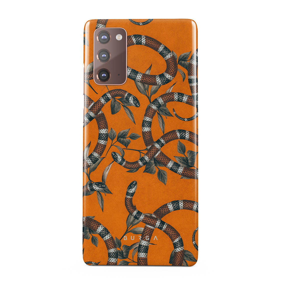 Take a bit of fierceness with yourself with our bright orange and dangerously beautiful Samsung Galaxy Note 20 4G / 5G phone case with a snake pattern. This case is real eye candy for fashion lovers and just as needed for those who strive to keep their phones protected.