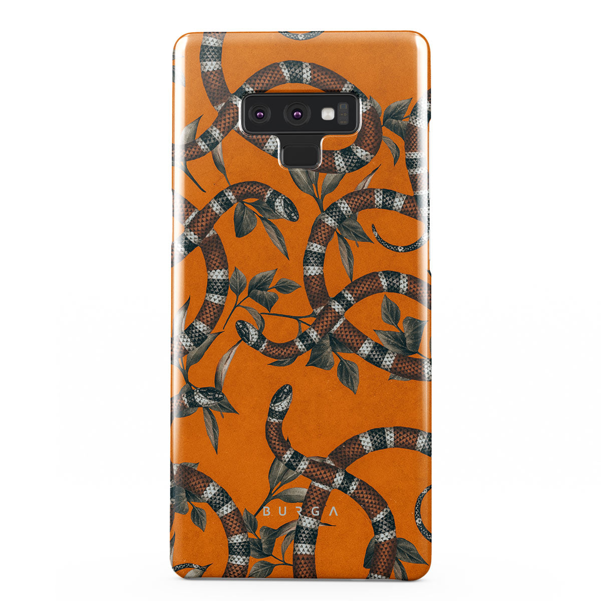 Take a bit of fierceness with yourself with our bright orange and dangerously beautiful Samsung Galaxy Note 9 phone case with a snake pattern. This case is real eye candy for fashion lovers and just as needed for those who strive to keep their phones protected.