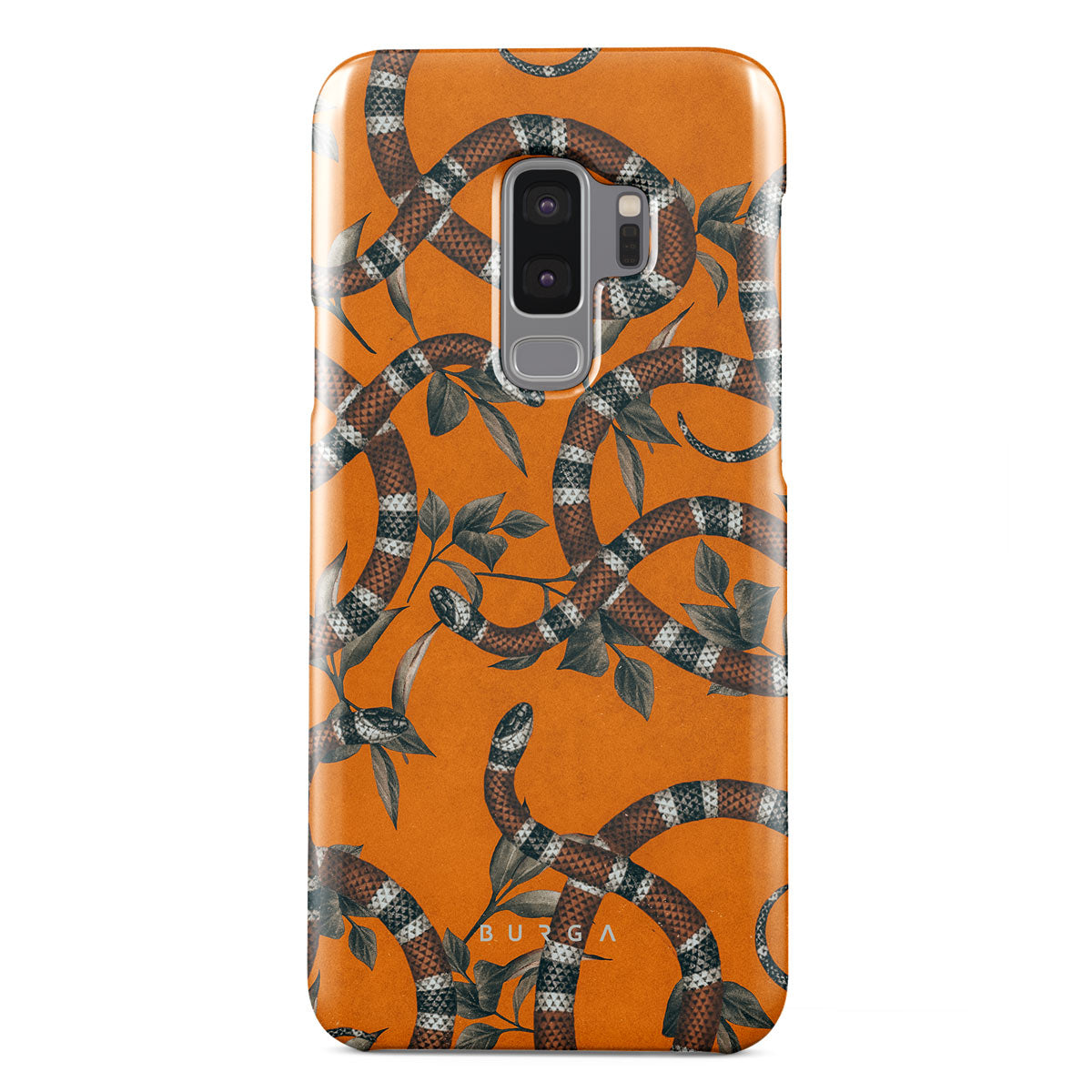 Take a bit of fierceness with yourself with our bright orange and dangerously beautiful Samsung Galaxy S9 Plus phone case with a snake pattern. This case is real eye candy for fashion lovers and just as needed for those who strive to keep their phones protected.