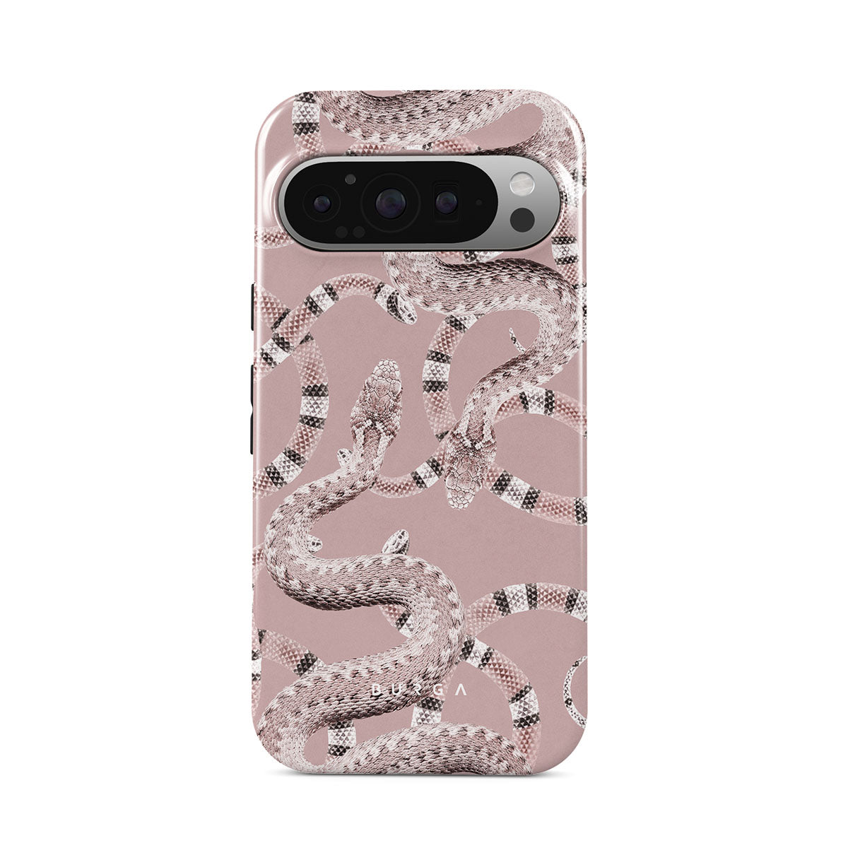 Bring the fierceness with our Poolside Glam Google Pixel 9 Pro XL phone case. With the pastel pink case featuring snakes, let everyone know that you can always stand for yourself no matter your kind nature. Make a statement and protect your phone at the same time.