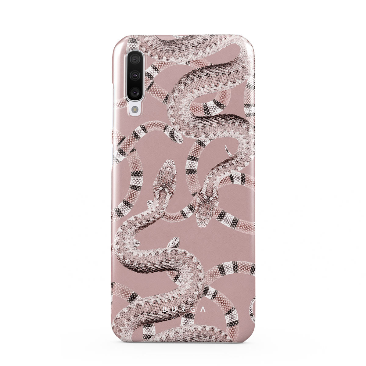 Bring the fierceness with our Poolside Glam Samsung Galaxy A70 phone case. With the pastel pink case featuring snakes, let everyone know that you can always stand for yourself no matter your kind nature. Make a statement and protect your phone at the same time.