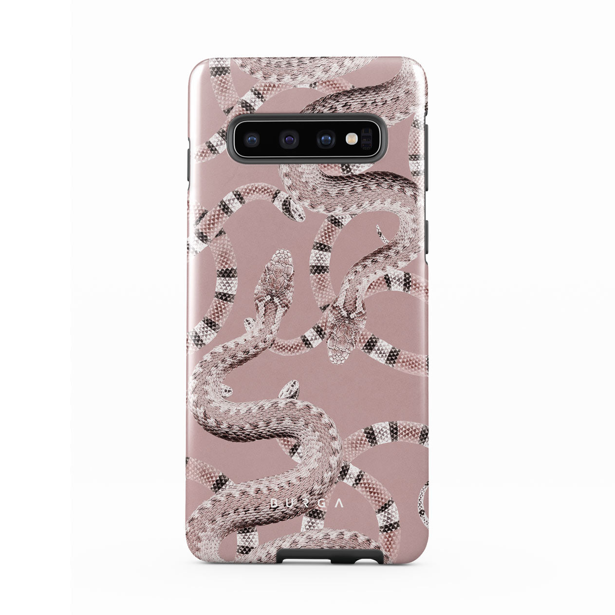 Bring the fierceness with our Poolside Glam Samsung Galaxy S10 phone case. With the pastel pink case featuring snakes, let everyone know that you can always stand for yourself no matter your kind nature. Make a statement and protect your phone at the same time.