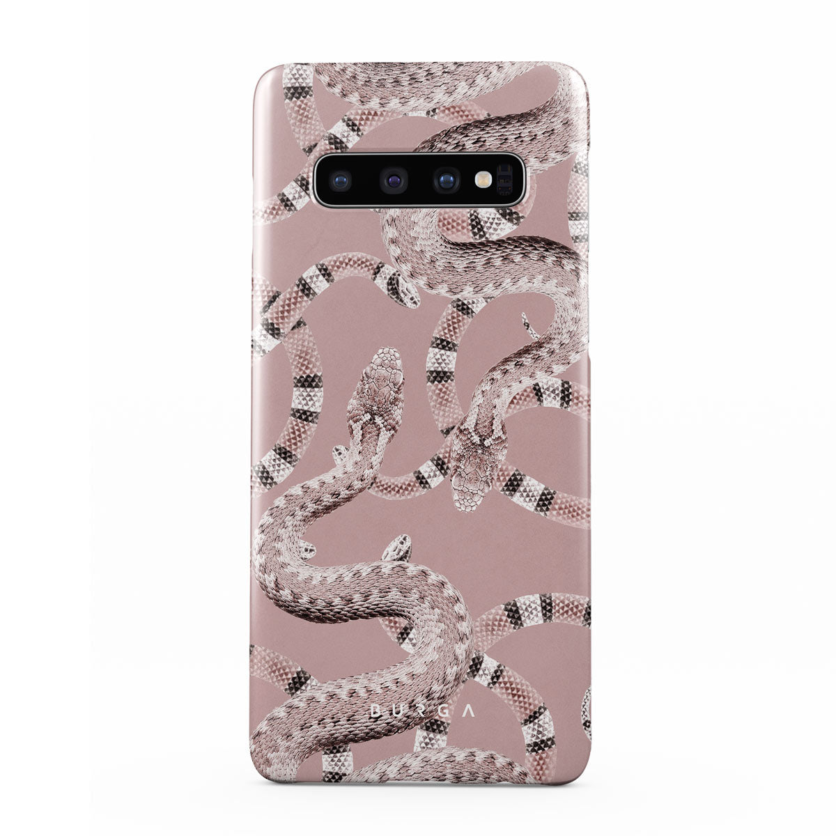 Bring the fierceness with our Poolside Glam Samsung Galaxy S10 Plus phone case. With the pastel pink case featuring snakes, let everyone know that you can always stand for yourself no matter your kind nature. Make a statement and protect your phone at the same time.