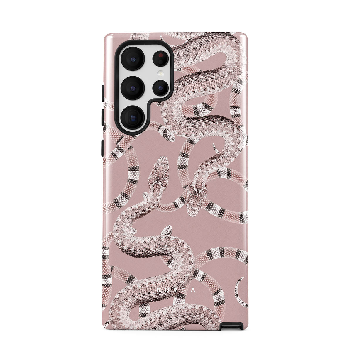 Bring the fierceness with our Poolside Glam Samsung Galaxy S22 Ultra phone case. With the pastel pink case featuring snakes, let everyone know that you can always stand for yourself no matter your kind nature. Make a statement and protect your phone at the same time.