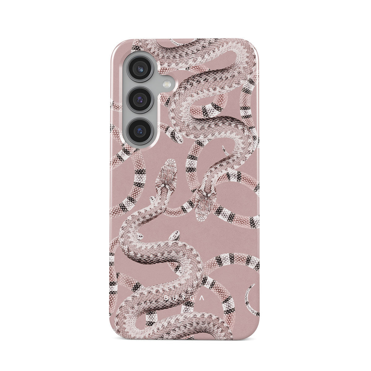 Bring the fierceness with our Poolside Glam Samsung Galaxy S24 Plus phone case. With the pastel pink case featuring snakes, let everyone know that you can always stand for yourself no matter your kind nature. Make a statement and protect your phone at the same time.