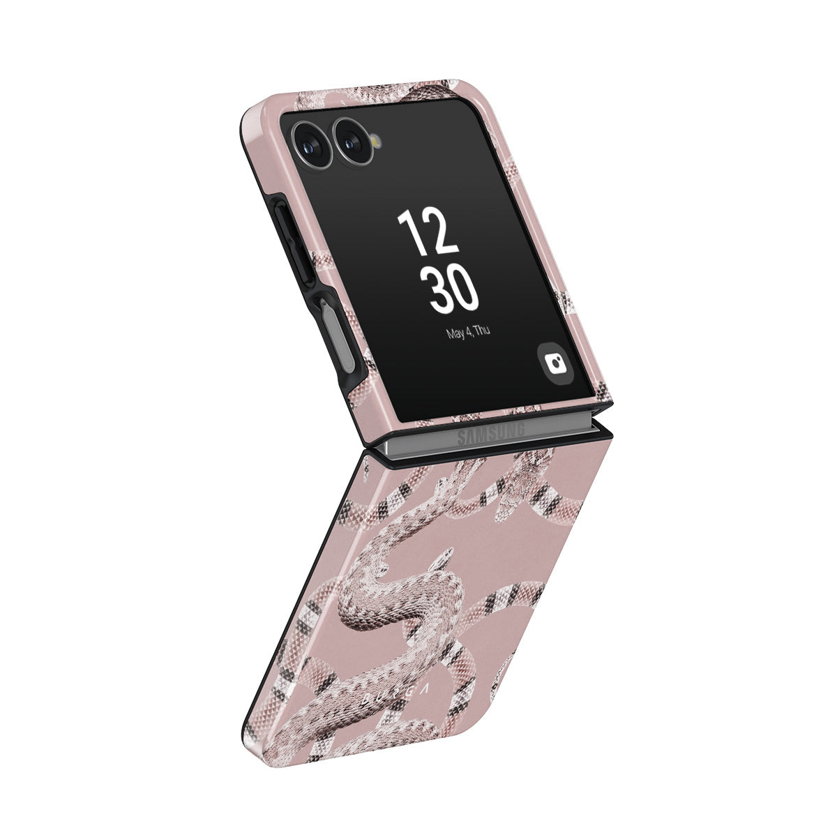 Bring the fierceness with our Poolside Glam Samsung Galaxy Z Flip 7 phone case. With the pastel pink case featuring snakes, let everyone know that you can always stand for yourself no matter your kind nature. Make a statement and protect your phone at the same time.